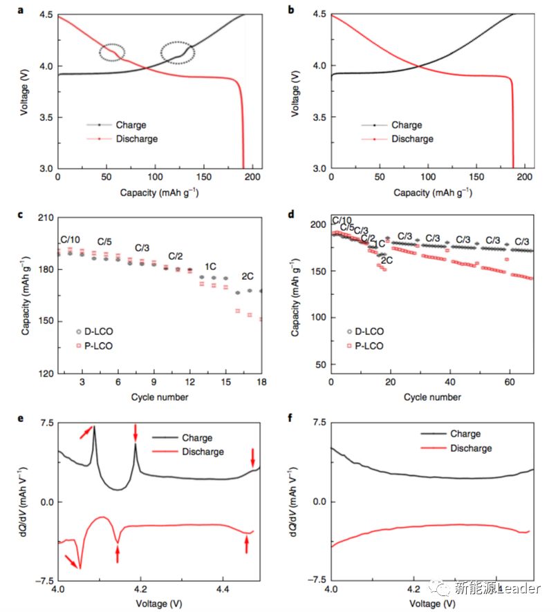 華為中央研究院和阿貢實(shí)驗(yàn)室的科研人員們緊密合作,通過(guò)在LCO材料中摻入少量的La和Al很好的抑制了在脫Li過(guò)程中LCO材料發(fā)生的相變,減輕了顆粒內(nèi)部和顆粒之間的應(yīng)力產(chǎn)生和積累,從而減少了循環(huán)過(guò)程中LCO顆粒表面裂紋的產(chǎn)生,極大的提升了LCO材料在4.5V高電壓下的循環(huán)穩(wěn)定性,同時(shí)使得LCO材料的可逆容量達(dá)到190mAh/g,遠(yuǎn)高于目前的高壓鈷酸鋰材料(4.35V,165mAh/g)。同時(shí)La、Al摻雜還顯著的提升了Li+在LCO材料那的擴(kuò)散速度,提升了材料的倍率性能。最后,小編要說(shuō)一句:“科研不是口號(hào),喊喊就行了,科研是投入真金白銀搞出來(lái)的,向華為致敬!”