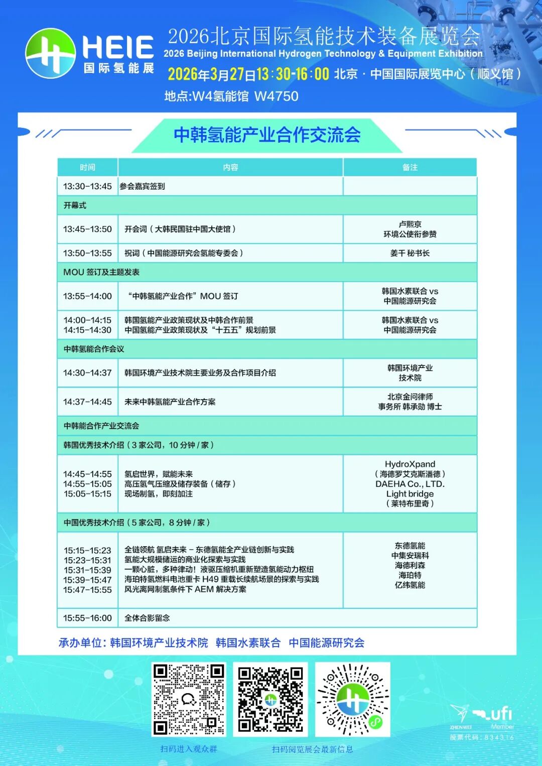 作為HEIE2026同期活動的重要組成部分,一場聚焦東亞氫能產(chǎn)業(yè)協(xié)同發(fā)展的高端對話——“中韓氫能產(chǎn)業(yè)合作交流會” 將在3月27日、于北京·中國國際展覽中心(順義館)W4氫能館W4750舉行。本次會議由韓國環(huán)境產(chǎn)業(yè)技術(shù)院、韓國水素聯(lián)合與中國能源研究會共同承辦,旨在為兩國產(chǎn)業(yè)界搭建一個務實、高效的對接平臺,共同解讀政策趨勢、分享技術(shù)成果、探索商業(yè)機遇。