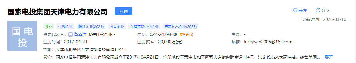 近日,國(guó)家電投集團(tuán)天津電力有限公司正式運(yùn)營(yíng)。