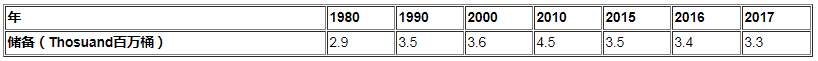表27:自1980年以來在桶中的埃及探明石油儲量