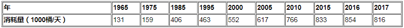 表29:自1965年以來的埃及石油消費量