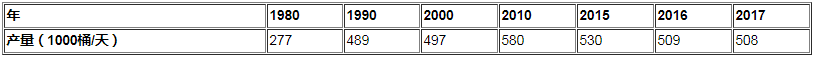 表28:自1965年以來埃及石油產量