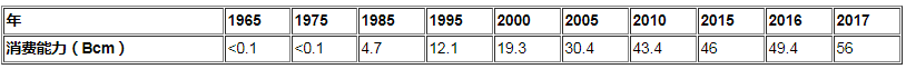 圖18:埃及天然氣消耗量(IEA,2017)