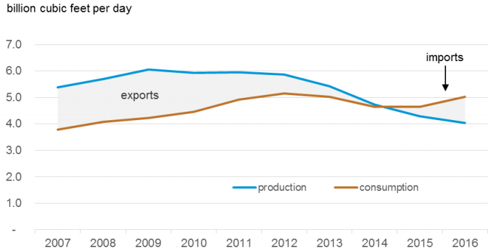 圖16:埃及天然氣產量,消費量,凈出口量,凈進口量(EIA,2018)