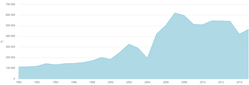 圖14:埃及最終石油和石油產品消費量(IEA,2017)