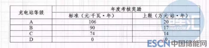 一是日??己霜剟睿疵咳齻€月對公用充電站的平均充電收費(fèi)標(biāo)準(zhǔn)、利用率等經(jīng)營情況進(jìn)行考核評價,引導(dǎo)企業(yè)通過優(yōu)化收費(fèi)標(biāo)準(zhǔn)、創(chuàng)新運(yùn)營模式等方式提質(zhì)增效。根據(jù)考核情況,對考核評價最好的A級充電站給予每度電0.2元的獎勵,獎勵上限為1500度/千瓦·年。
