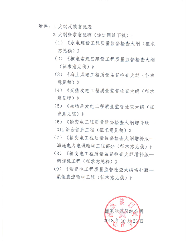 國家能源局綜合司關于征求《水電建設工程質量監督檢查大綱(征求意見稿)》等技術標準意見的函
