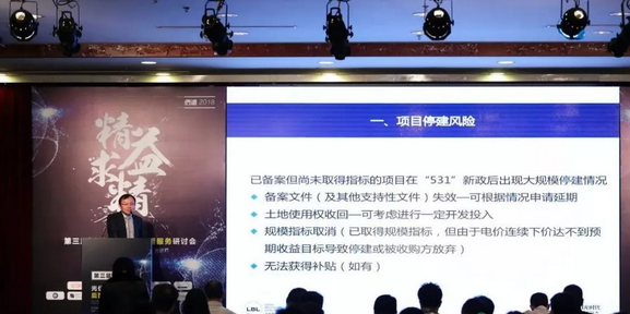 但是,我們知道“531”新政出來以后,要求新的光伏項目必須通過競爭性的方式獲得,而不是像之前只要備案了項目就是你的了,沒有人跟你競爭。這意味著現有的已備案的光伏項目將具有稀缺性。主要體現在兩個方面:一、由于必須通過招投標方式確定投資人,很多人即使在當地有資源也難以拿到項目,或者越來越困難;二、競價方式將會導致上網電價越來越低,還不如按照國家目前這種每年公布一次電價方式取得電價的效果更好。因此,雖然停建是一種止損的方式,從我個人的建議來講,并不希望大家把這個項目直接丟了,還是應該積極應對。項目停建的風險主要是以下幾方面:
