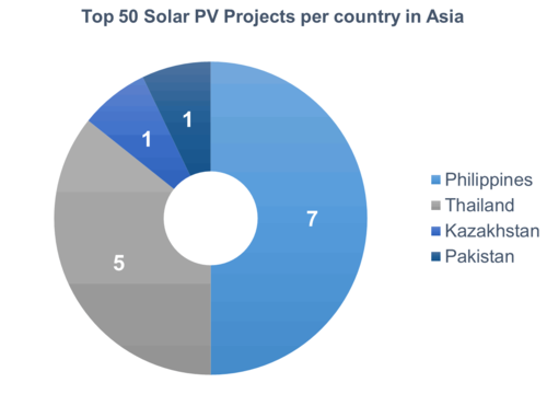 Solarplaza排名中認為,從數量上看,南非(19)、智利(19)、菲律賓(7)、巴西(5)、泰國(5)排在全球前五位。