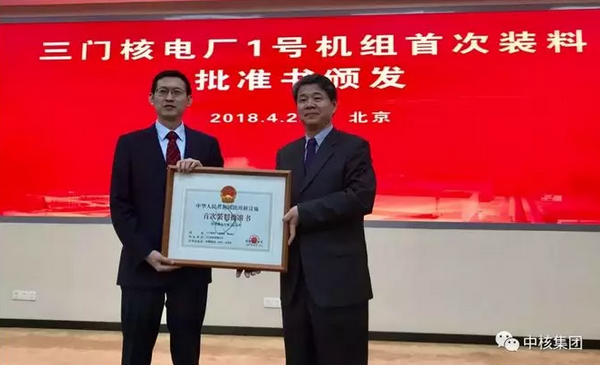從三門核電1號機組現場傳來喜訊!4月25日19時46分,隨著燃料抓取機將第1組核燃料組件抓取后穩穩運送至堆芯指定位置,中國核電投資控股的全球首臺AP1000三代核電機組——三門核電1號機組反應堆首次裝料正式開始,標志著三門核電1號機組工程建設轉入帶核調試的新階段,三門核電站在實現并網發電過程邁出了關鍵一步。