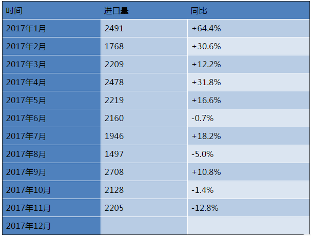 1、2017年以來煤炭的進口情況