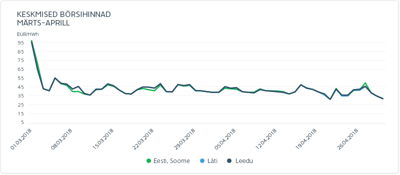 根據預期,由于溫暖季節的開始,電價在四月份下降。電氣股價在愛沙尼亞下降了12.0%,或每兆瓦時39.88歐元,芬蘭11.8%,40.21歐元,40.03歐元,或者在拉脫維亞和立陶宛13.2%,12.8%,或每兆瓦40.18歐元一個小時.